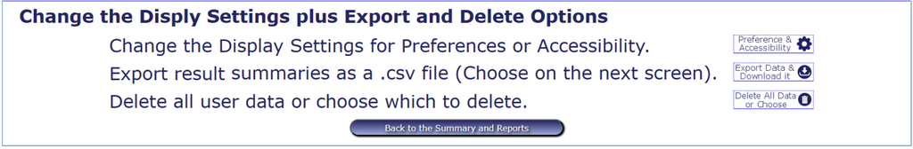 Other options such as Change the Display Settings for Preferences or Accessibility, Export and Delete operate in a similar way to the guides as previously described.