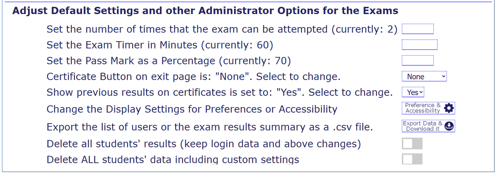 If the examination has been done more than once, this selection allows administrators to determine whether the users’ certificate should show previous results as well as the current ones.
