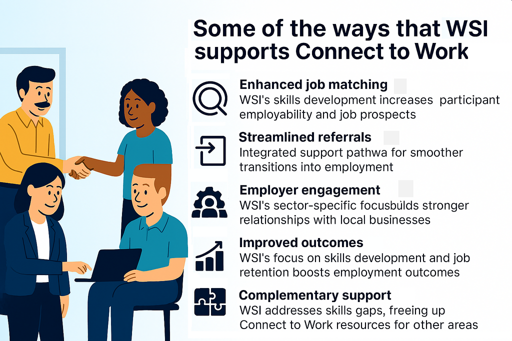 The WSI enhances Connect to Work by equipping individuals with the practical knowledge and confidence necessary to fully leverage personalised employment support. This value for money, flexible online support can boost your referrals and provide an excellent return on investment.