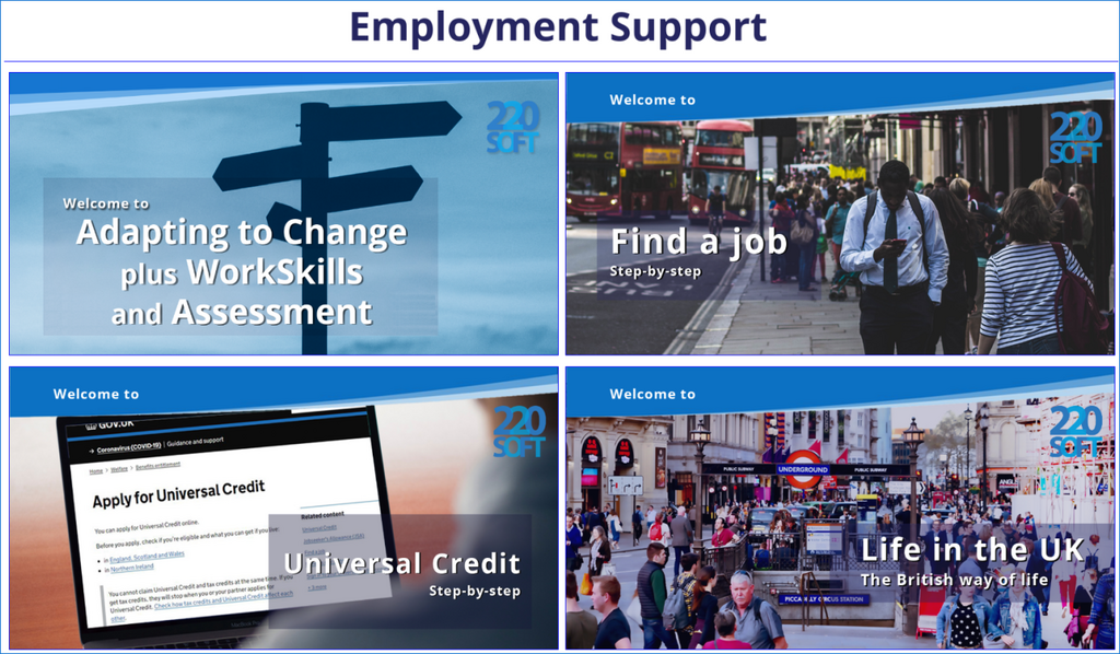 The Employment Support Collection allows for remote or face-to-face support for people and can assess their knowledge of work skills prior to using the products and again on completion. This allows for distance travelled to be established.