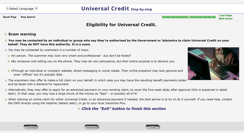Universal Credit – step-by-step: A guide that helps users navigate the Universal Credit system which takes you through the steps of setting up your account, how much will be paid and when it will be paid. Other useful areas like budgeting and, for those new to computing, basic computer skills are also covered.